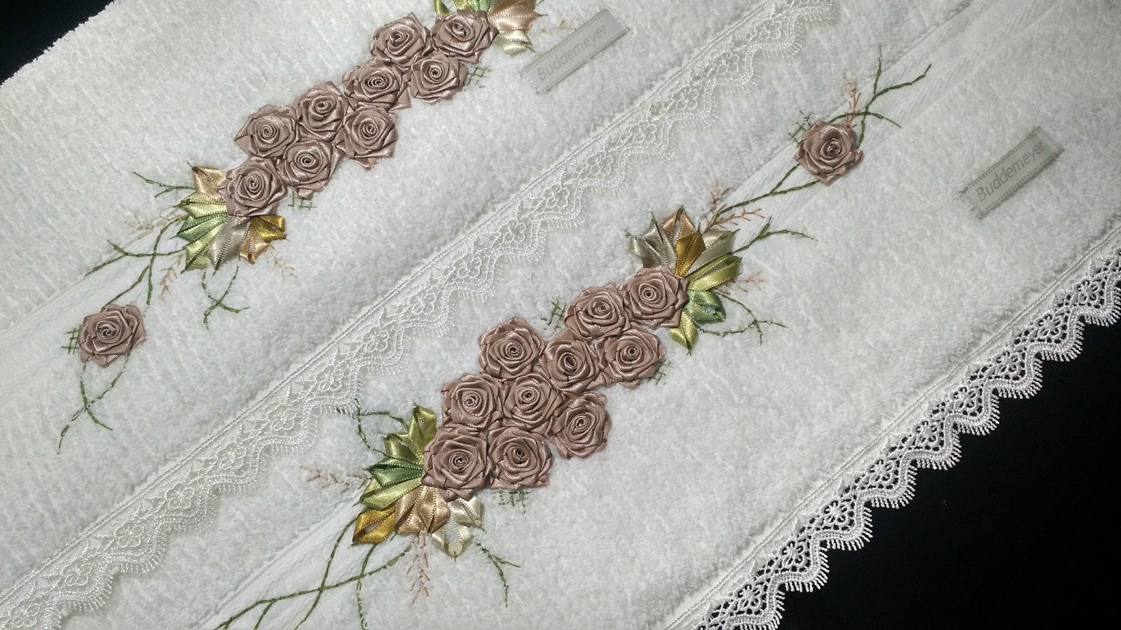 LOY HANDCRAFTS, TOWELS EMBROYDERED WITH SATIN RIBBON ROSES